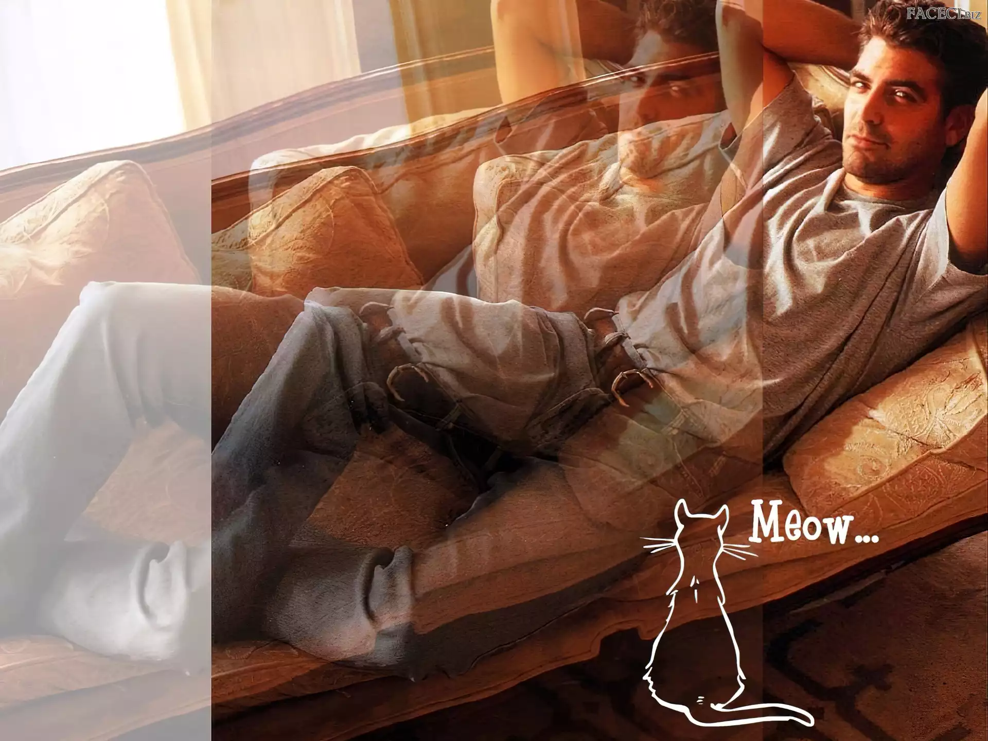 George Clooney, ciemne włosy welon, George Clooney, krawat twarz, George Clooney wąsy, George Clooney, broda brązowe spodnie, George Clooney, skok George Clooney czarny strój, George Clooney, martini uśmiech, George Clooney, czarna bluza George Clooney, skórzana kurtka motyl, George Clooney, fotel brązowe oczy, George Clooney, siwe włosy Strój, Grochy, George Clooney, Tło jeansy, George Clooney, szara koszulka kobieta, George Clooney, mężczyzna